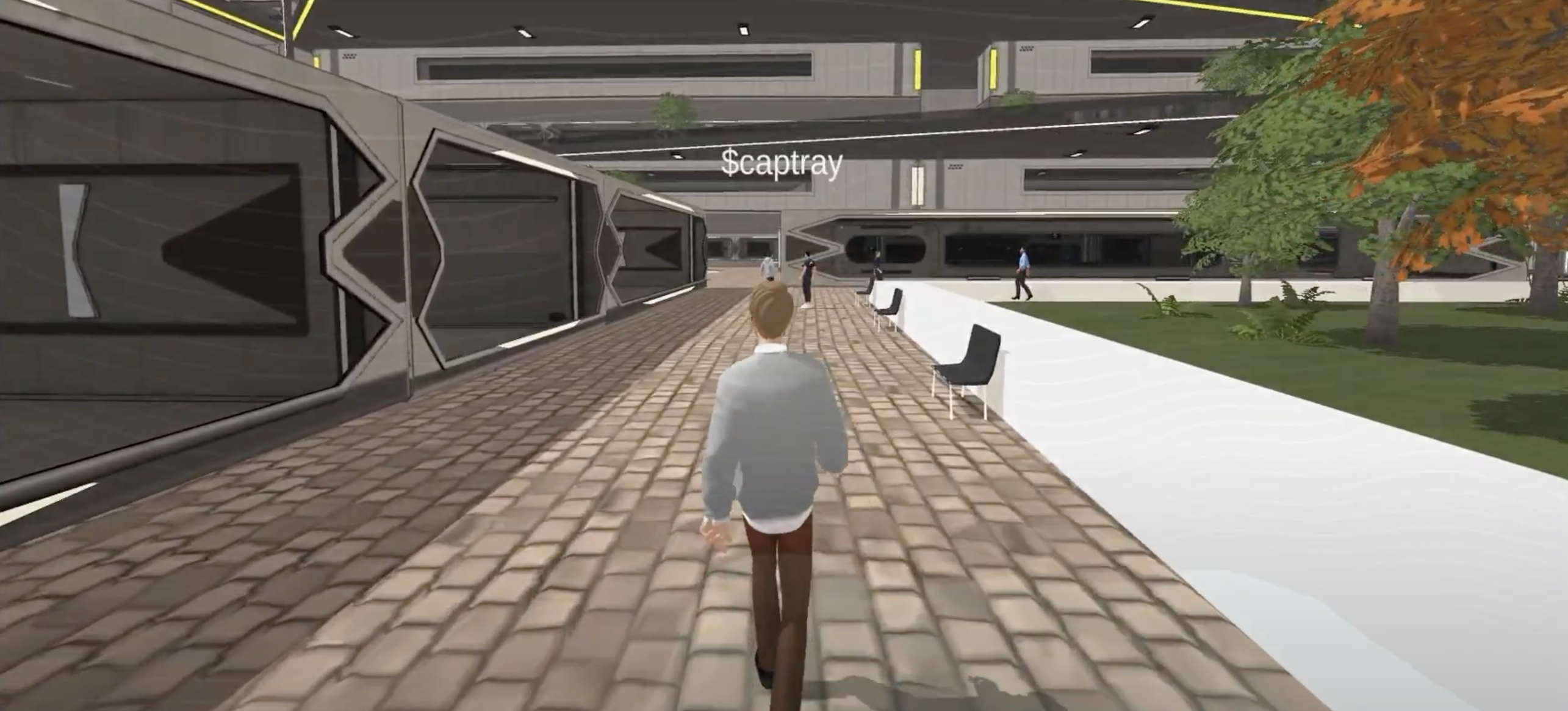 This is a large indoor space where people can take off their spacesuits and interact with other players and scenes.
